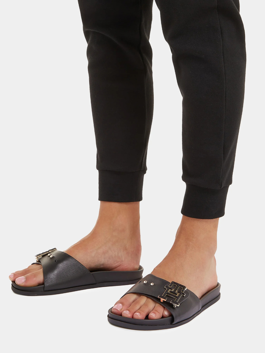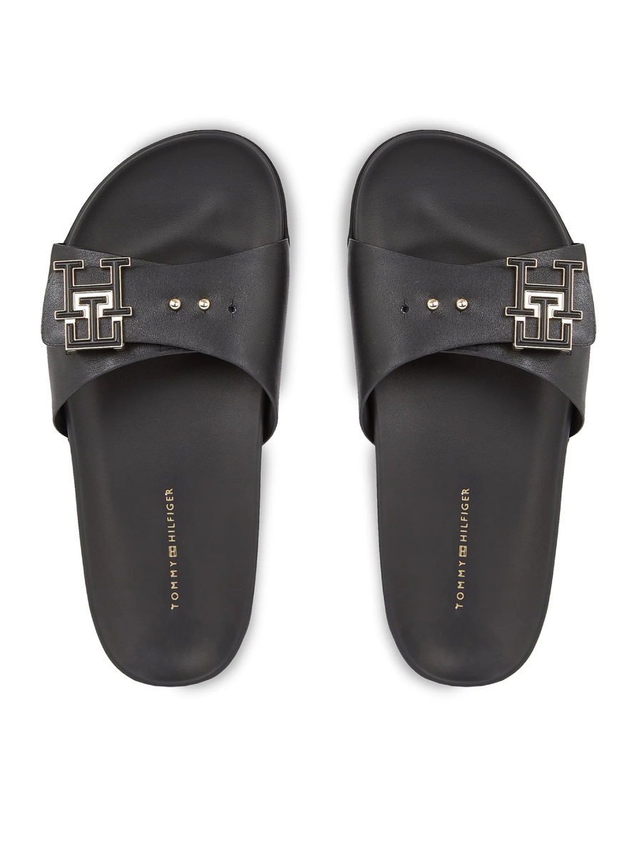 Dámské černé pantofle od Tommy Hilfiger.