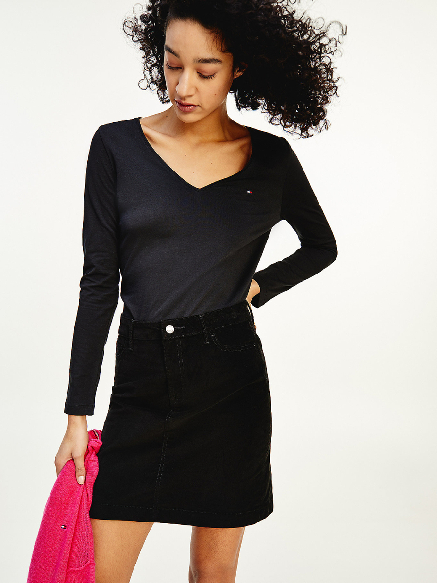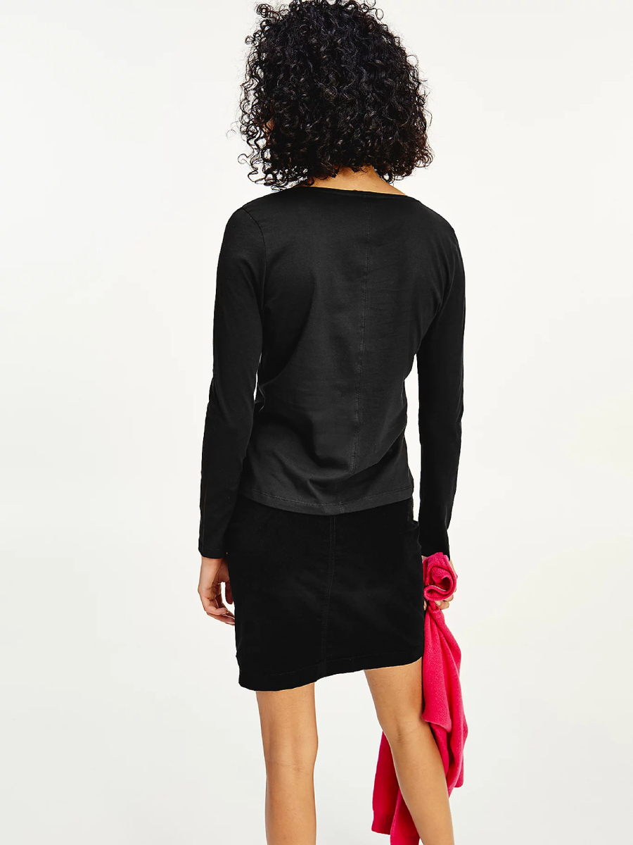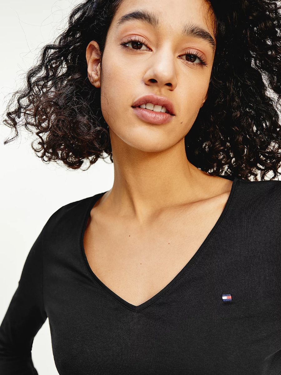 Dámské černé tričko s výstřihem do V a dlouhým rukávem od Tommy Hilfiger.