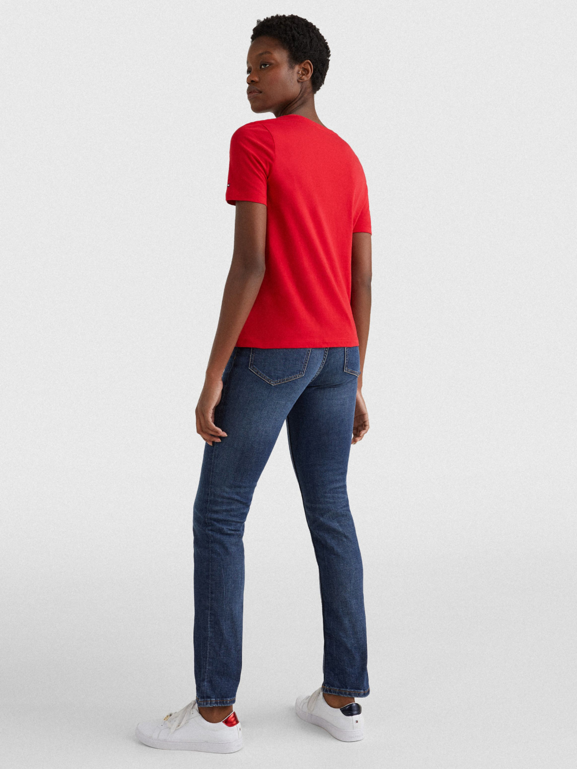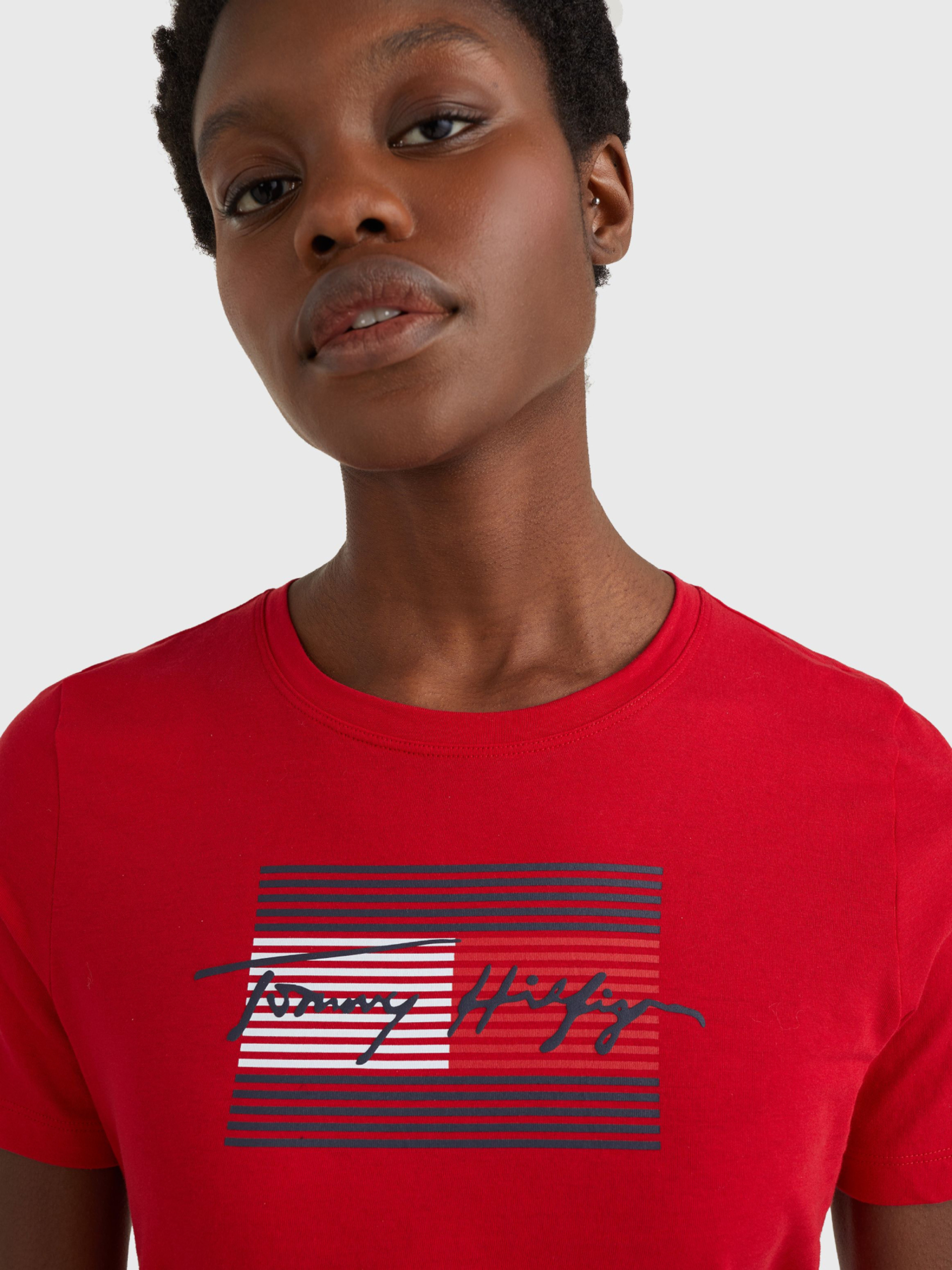 Dámské červené tričko s potiskem od Tommy Hilfiger.