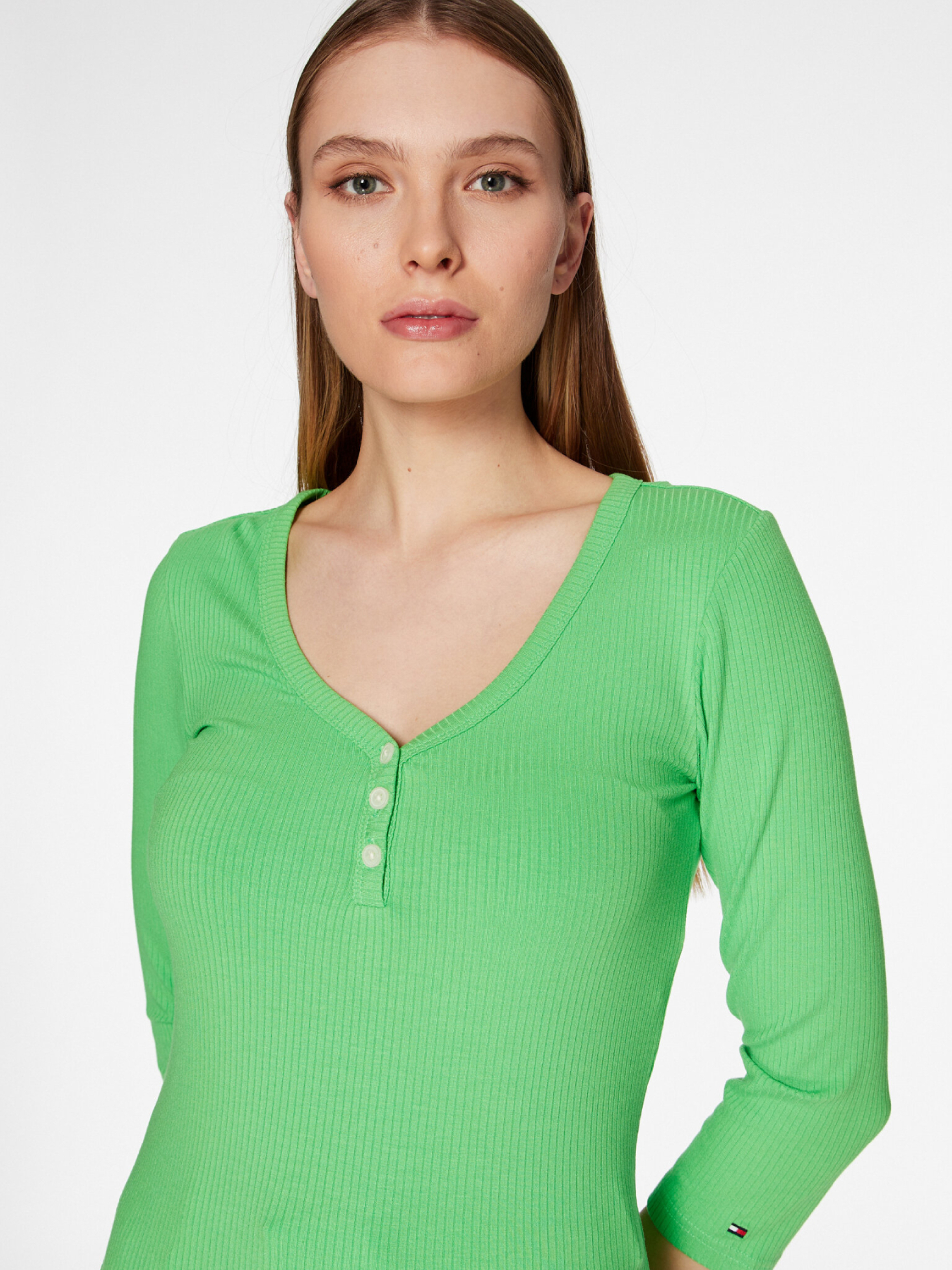 Dámské zelené tričko s 3/4 rukávem od Tommy Hilfiger.