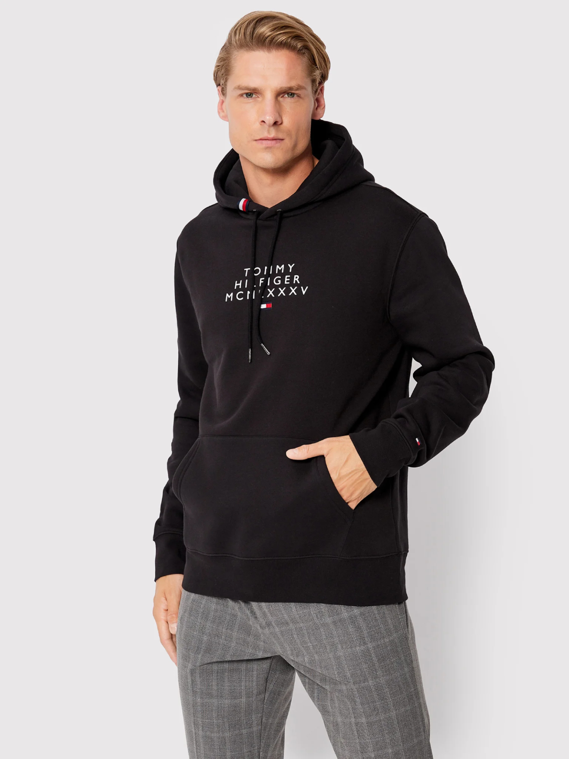 Pánská černá mikina s potiskem Centre od Tommy Hilfiger.