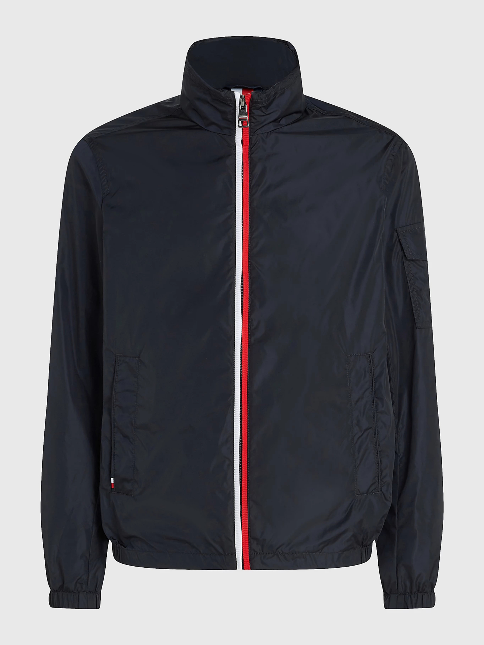 Pánská tmavě modrá jarní bunda od Tommy Hilfiger.