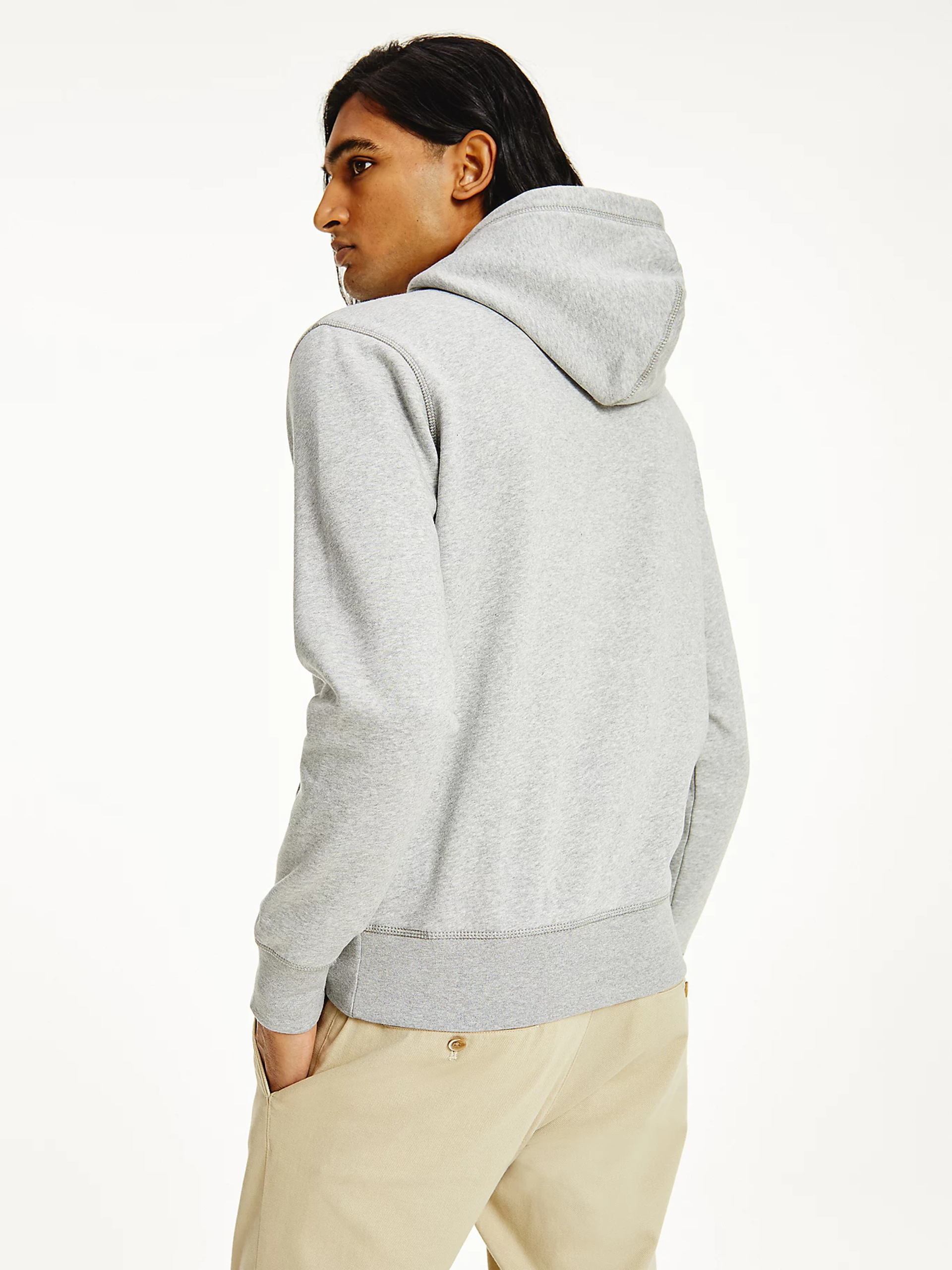 Pánská šedá mikina s kapucí od Tommy Hilfiger.