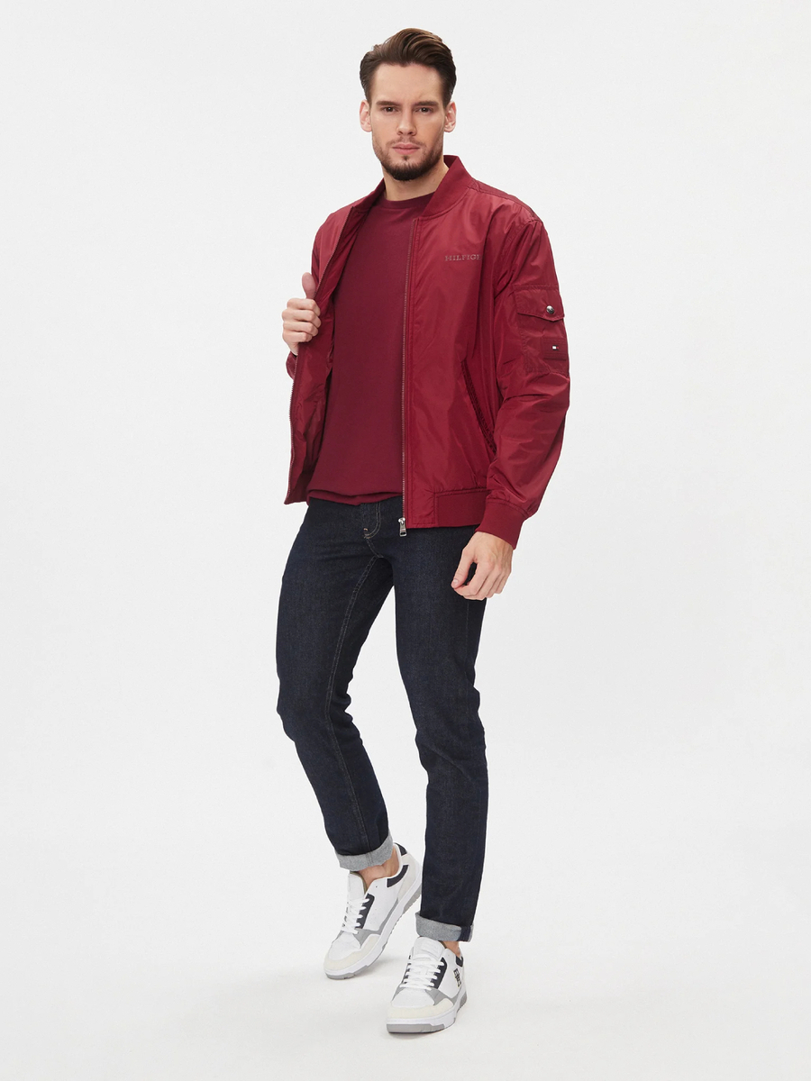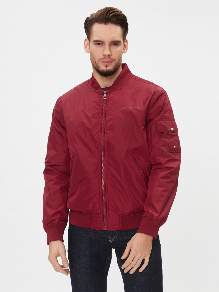 Pánská vínová bunda Bomber od Tommy Hilfiger.