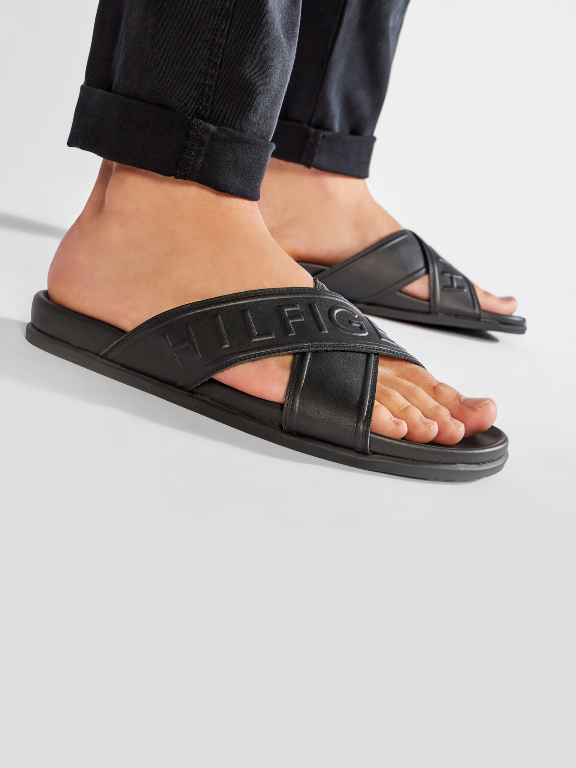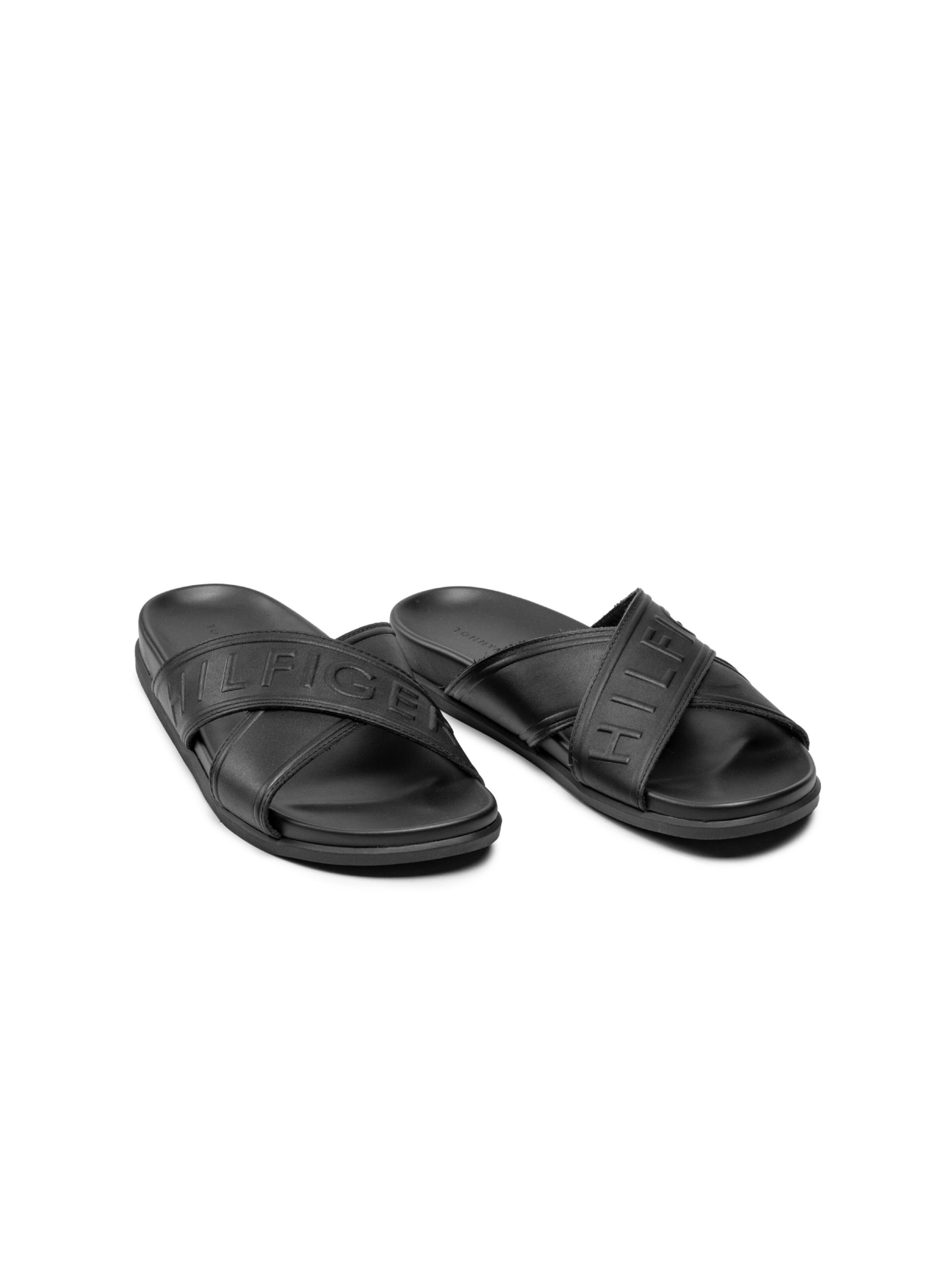 Pánské černé pantofle od Tommy Hilfiger.