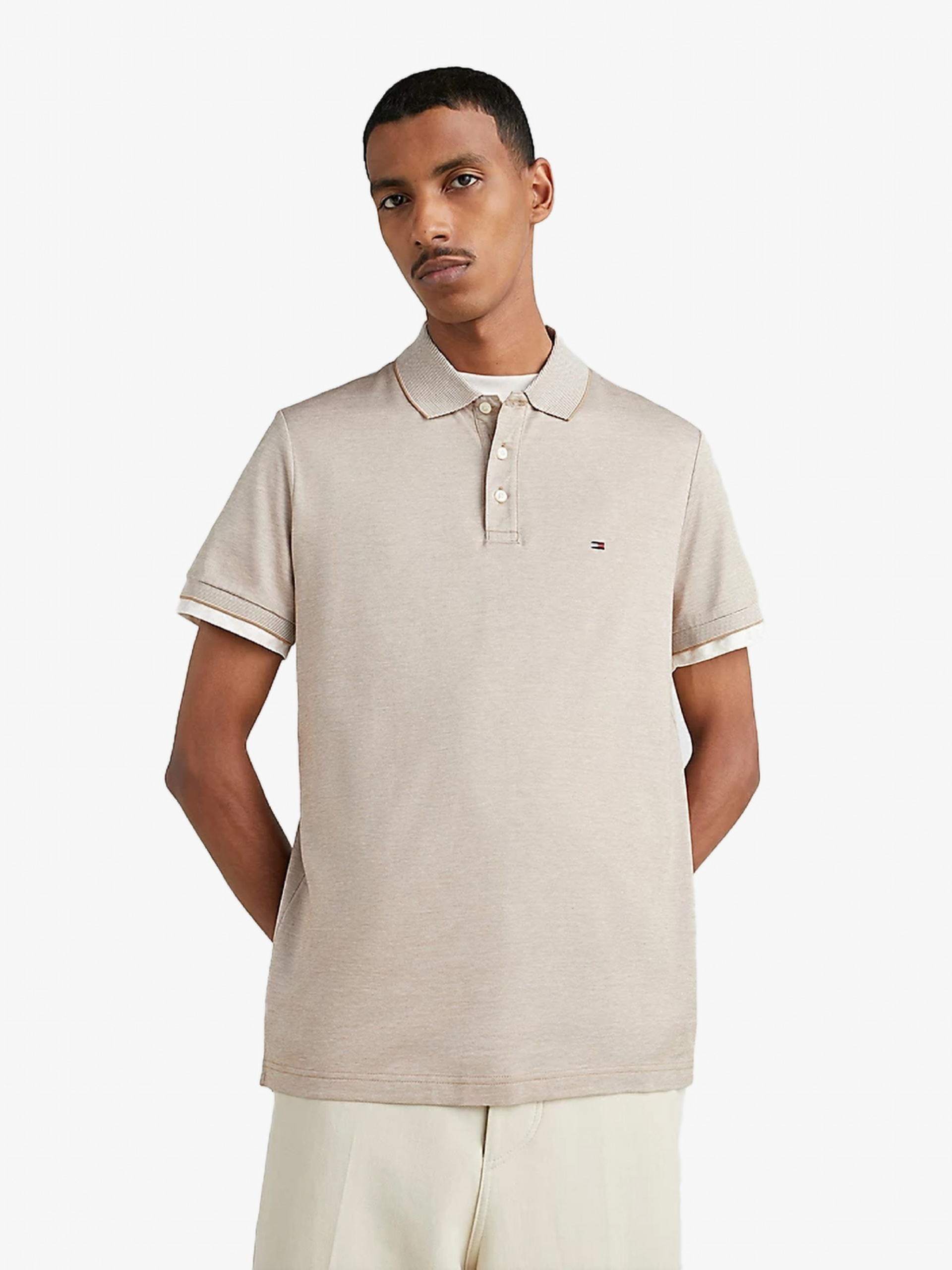 Tommy Hilfiger pánské hnědobílé polo Oxford
