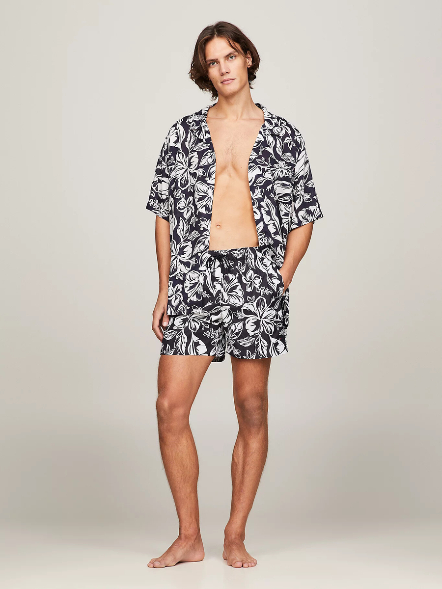 Pánské vzorované černobílé plavky od Tommy Hilfiger.