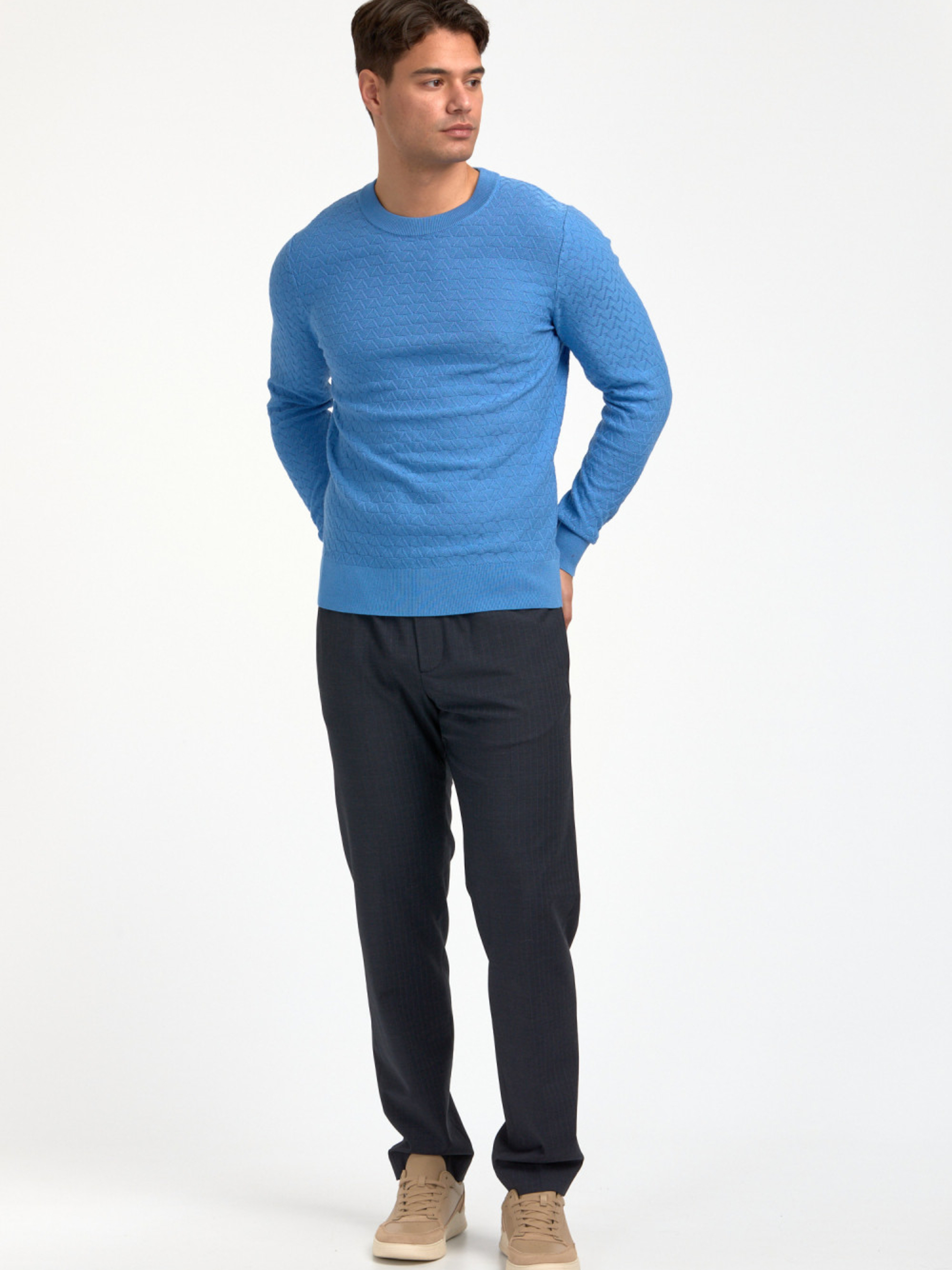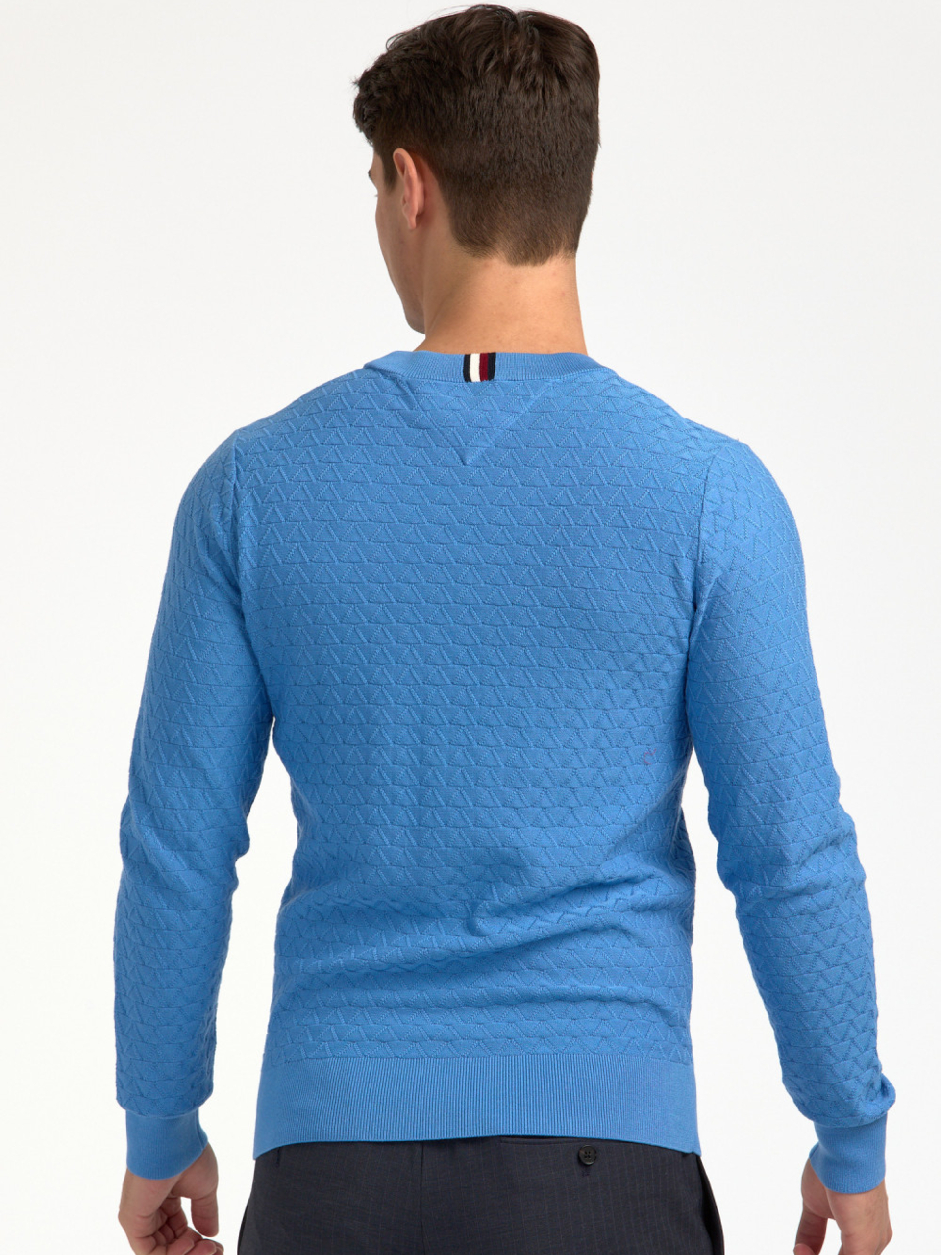 Pánský modrý svetr od Tommy Hilfiger.