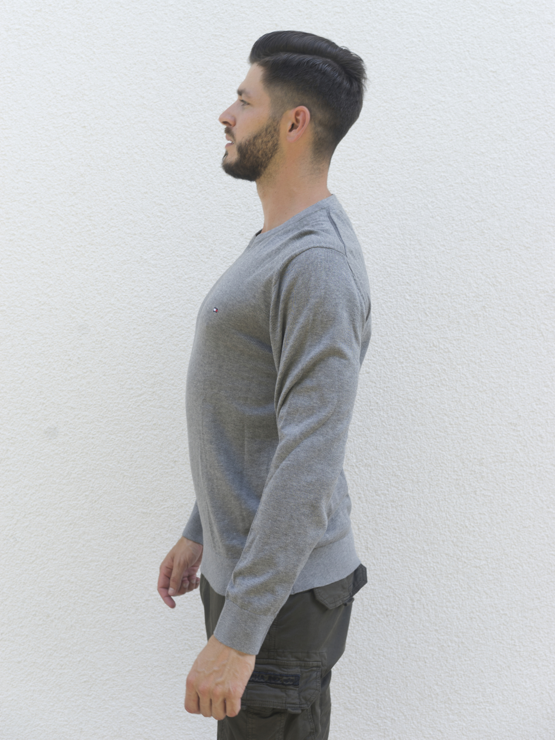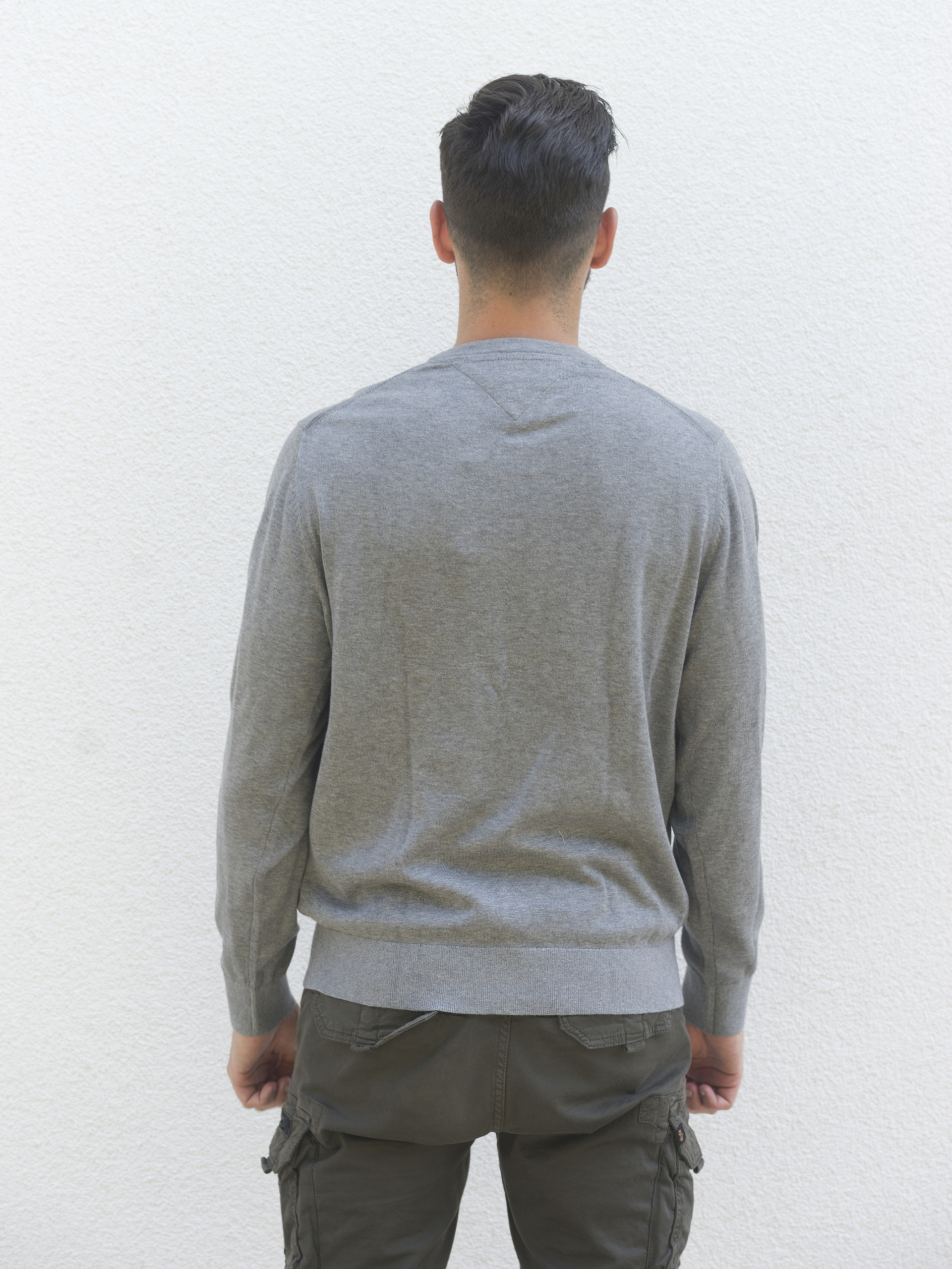 Pánský šedý svetr od Tommy Hilfiger.
