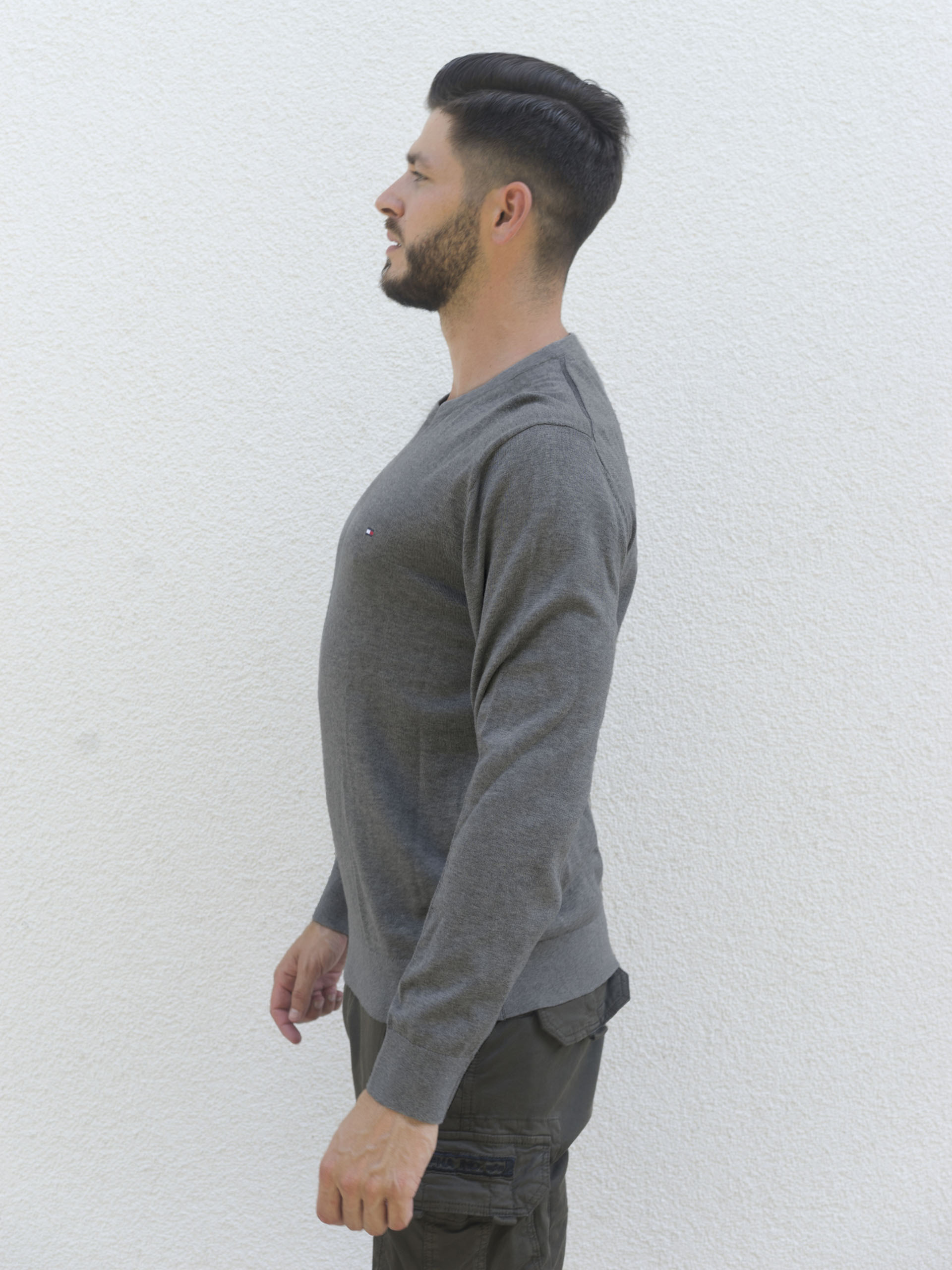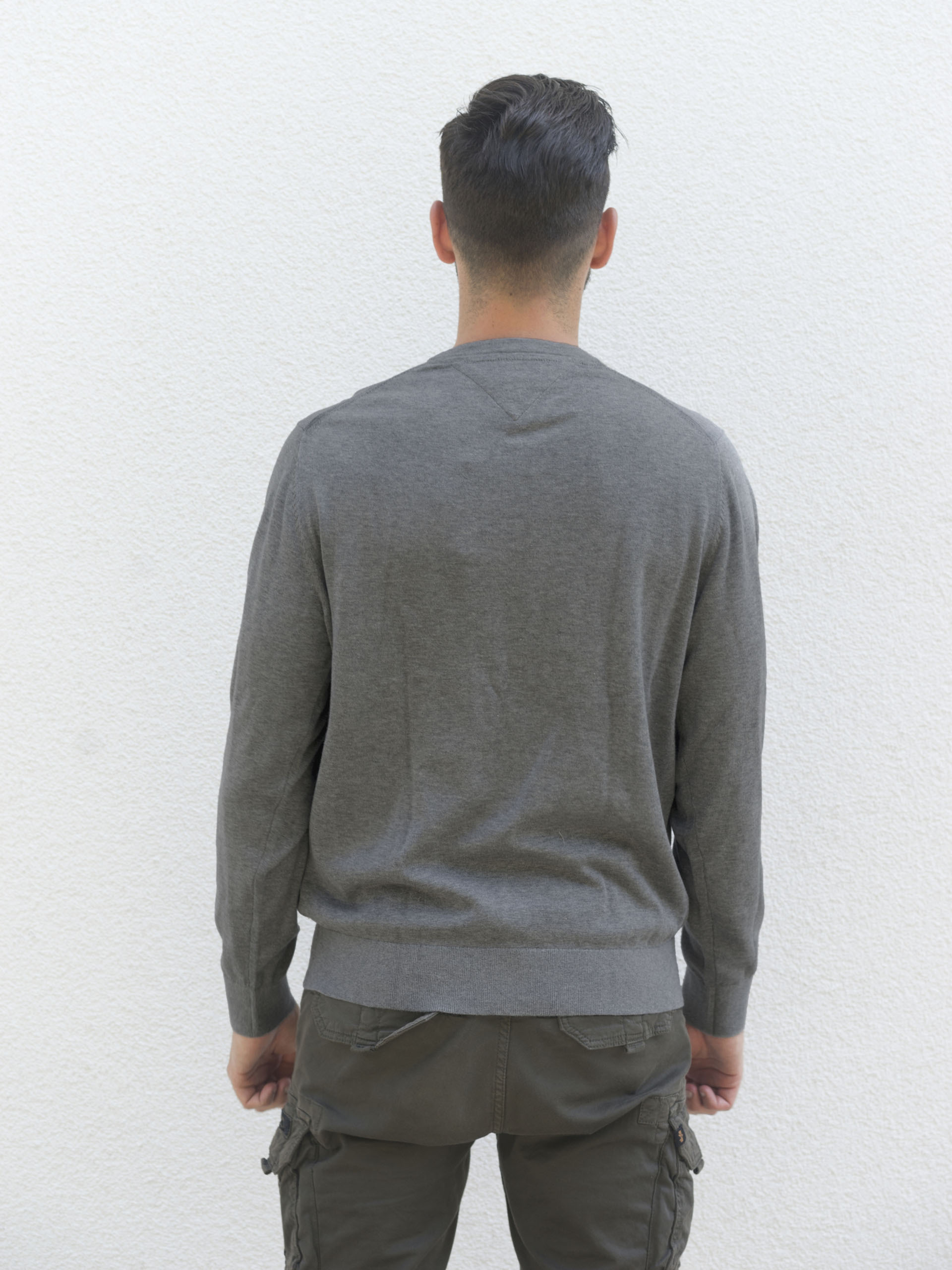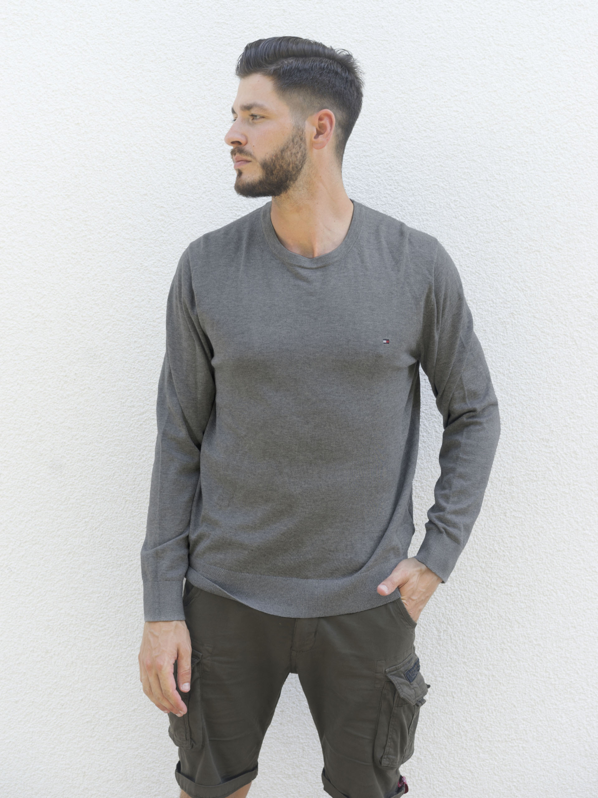 Pánský šedý svetr od Tommy Hilfiger.