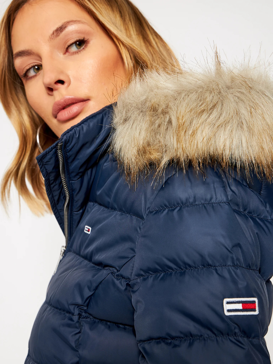 Dámská tmavě modrá zimní bunda od Tommy Jeans.