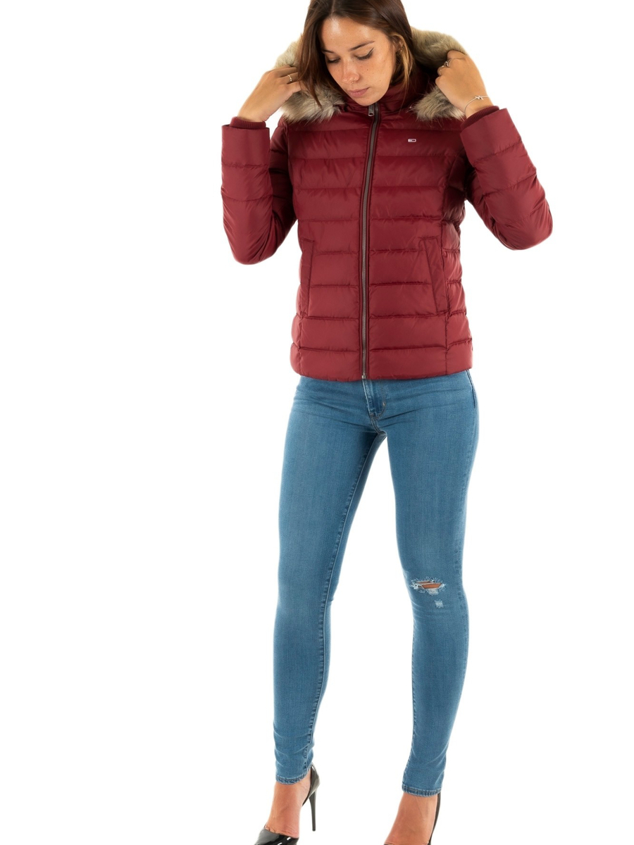 Dámská vínová zimní bunda od Tommy Jeans.