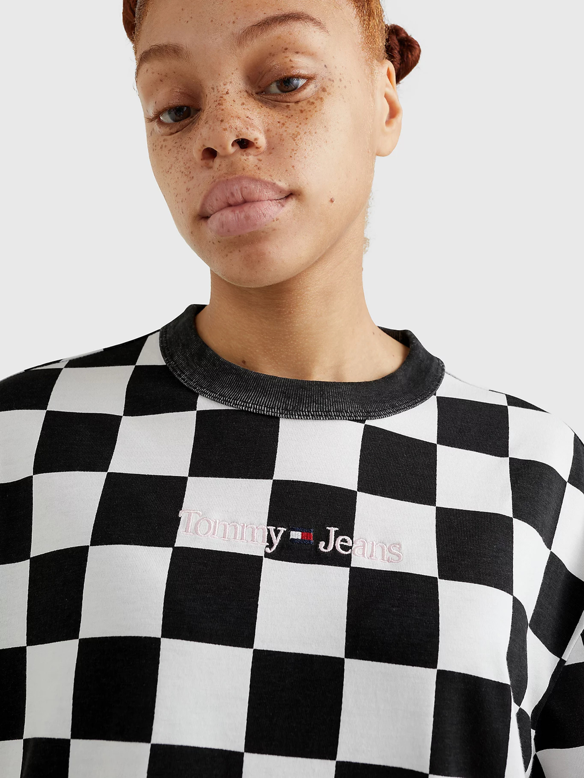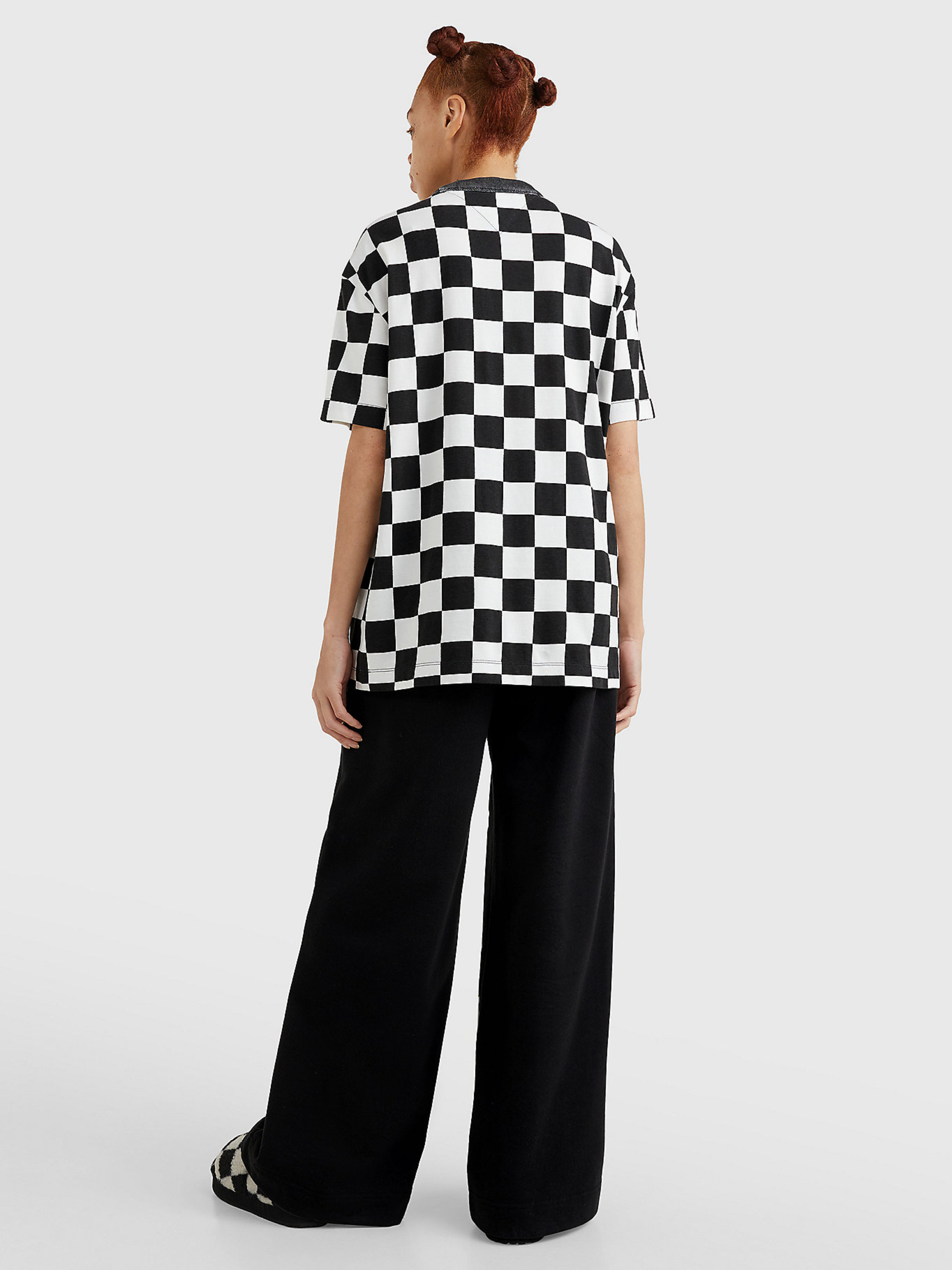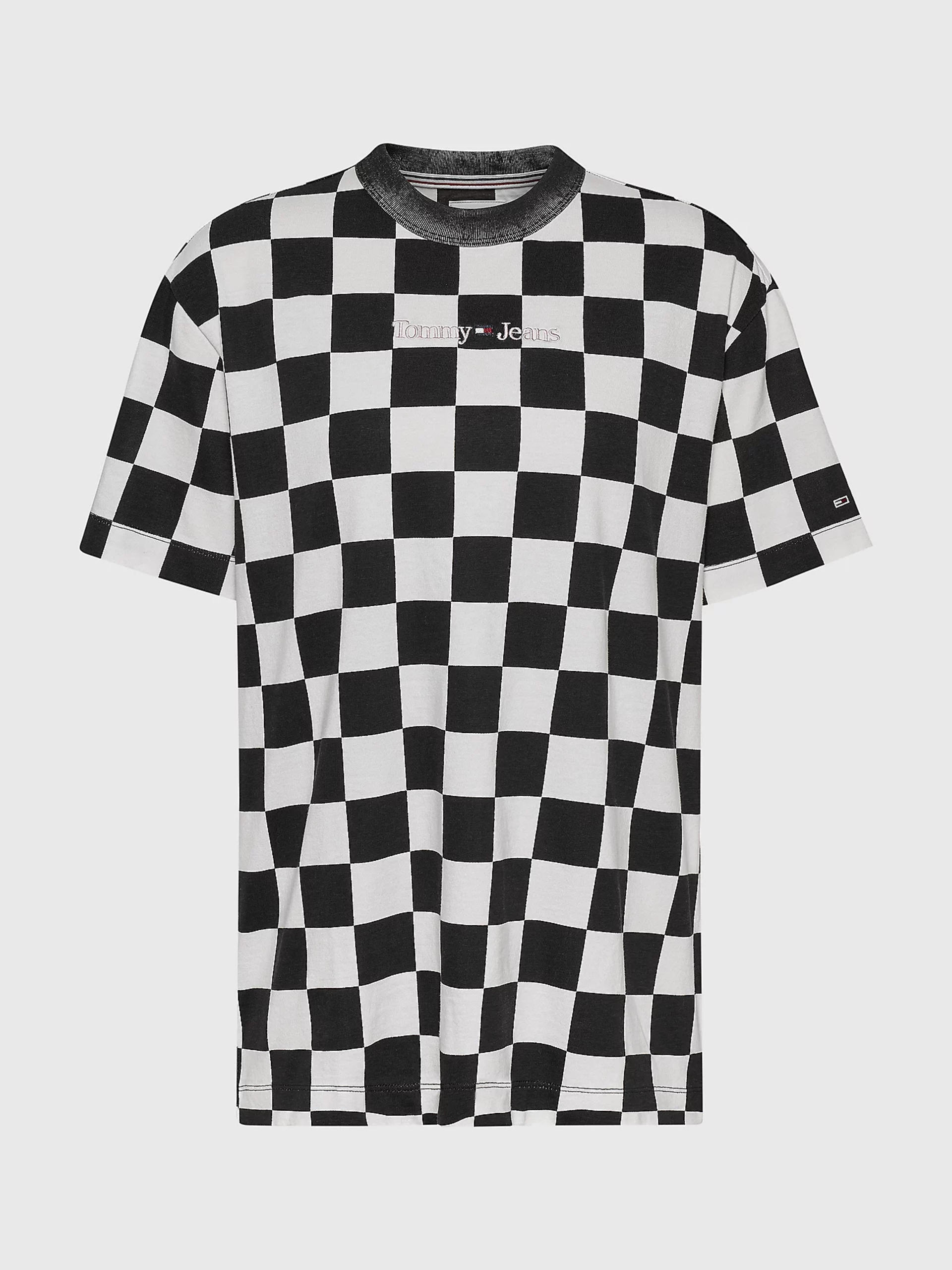 Dámské černo-bílé triko CHECKER od Tommy Jeans.