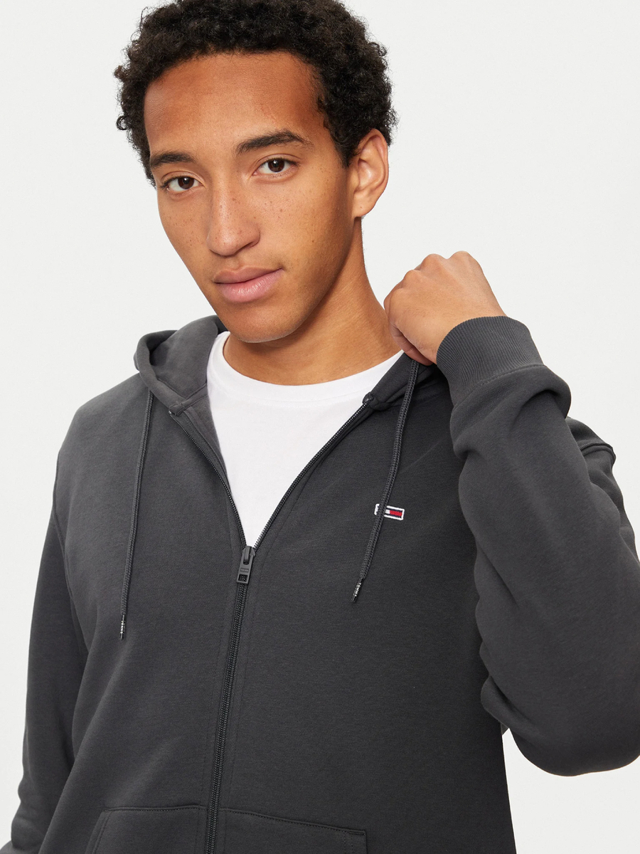 Pánská šedá mikina na zip s kapucí od Tommy Jeans.