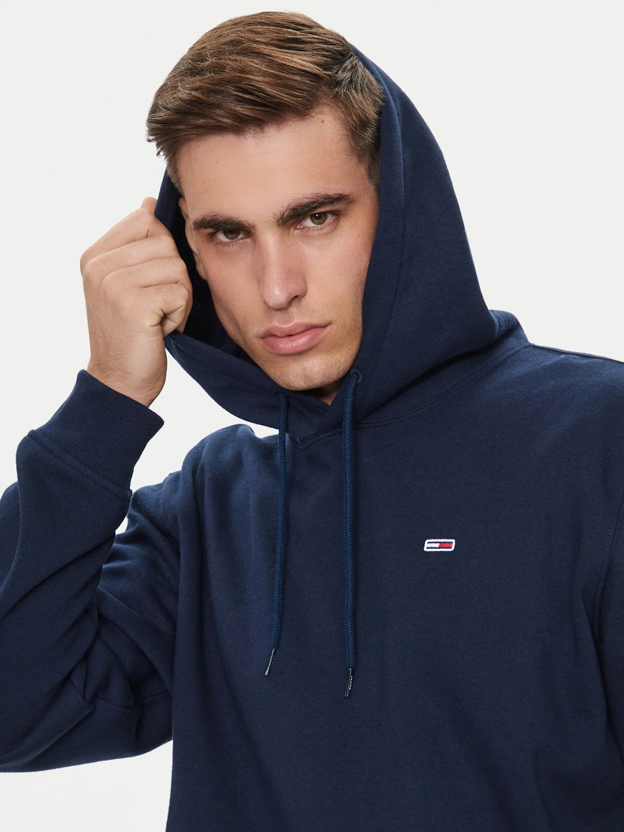 Pánská tmavě modrá mikina s kapucí od Tommy Jeans.
