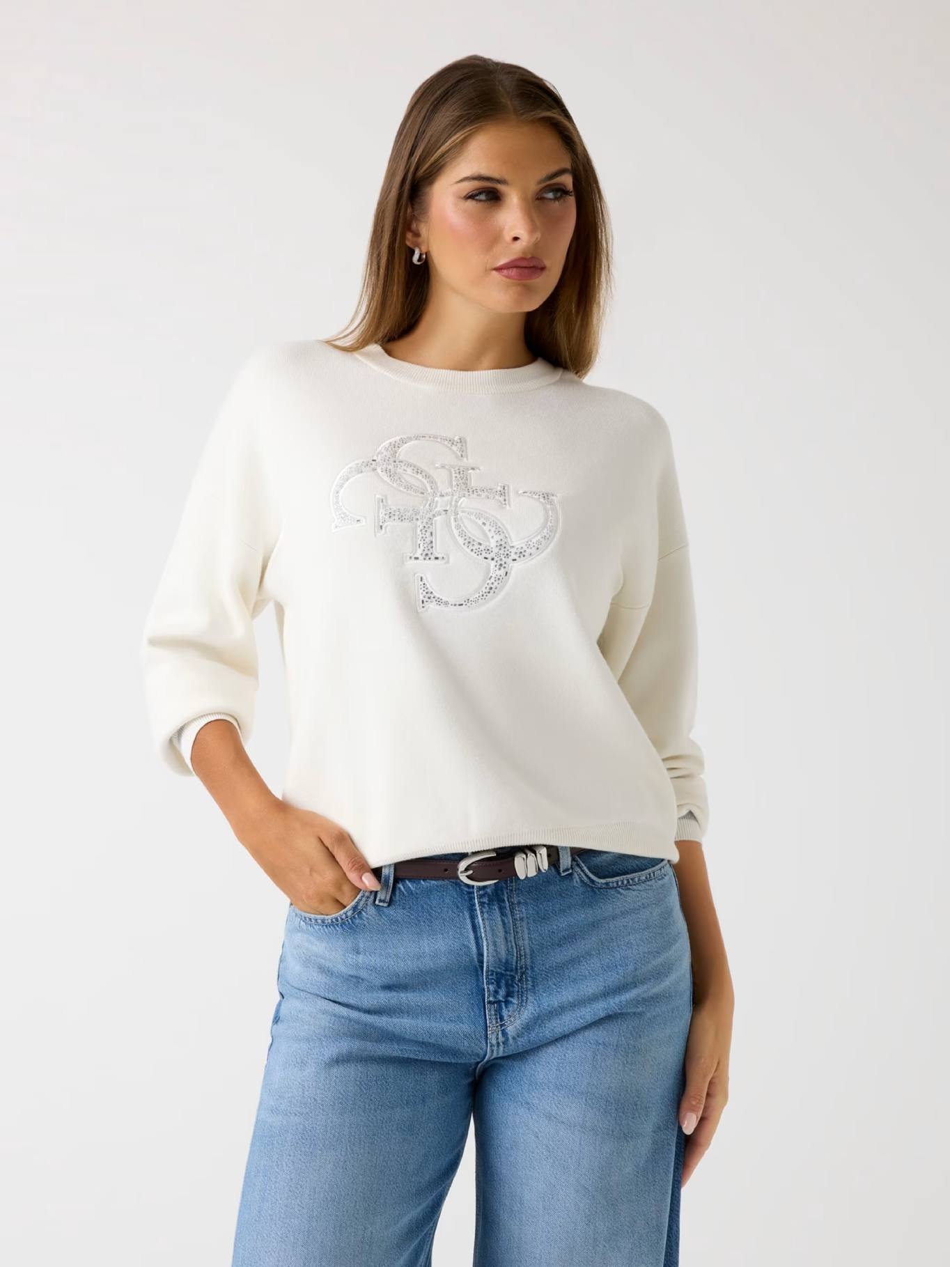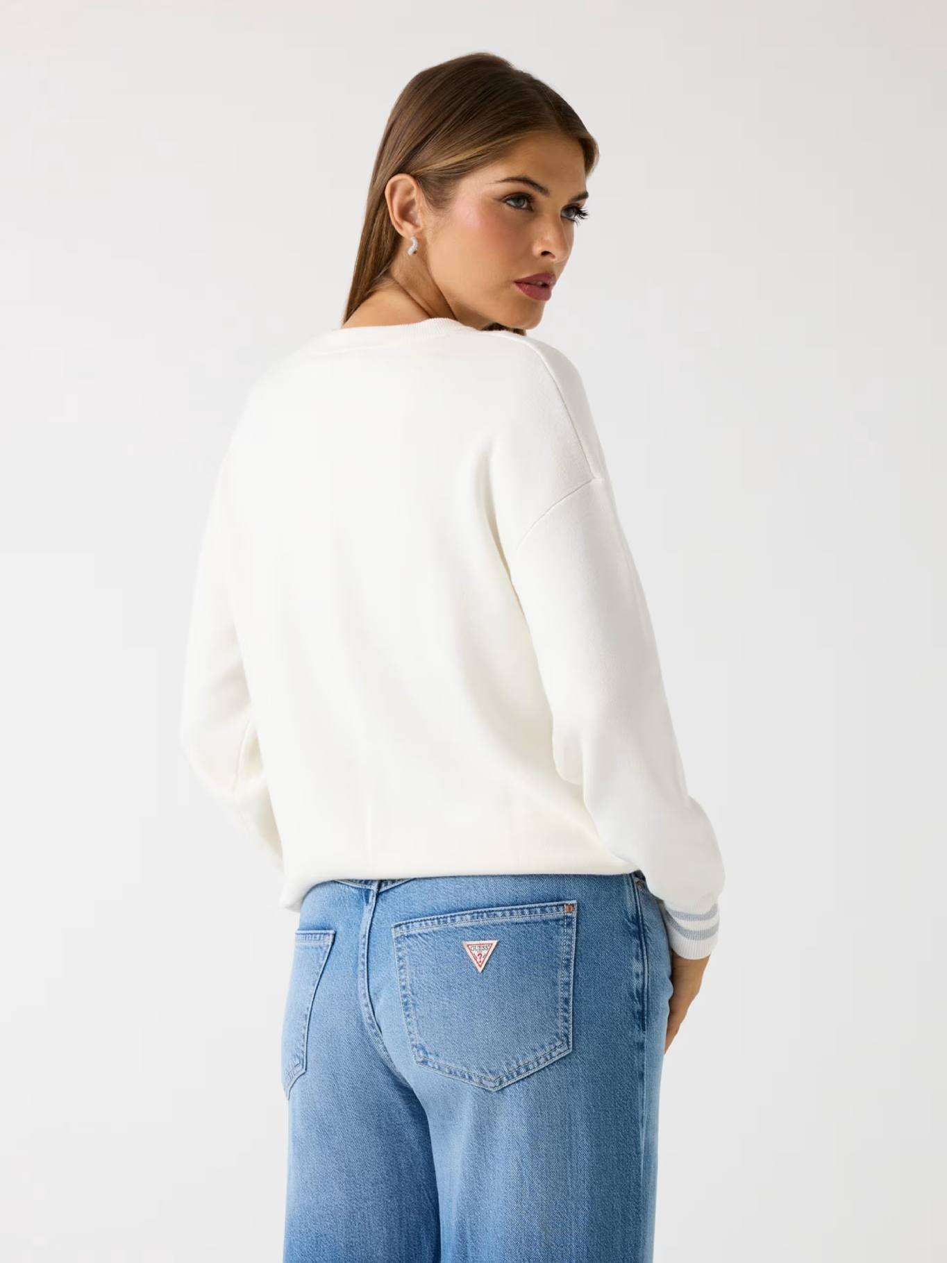 - klasický kulatý výstřih a balónkové rukávy - pruhované manžety - vpředu kamínky zdobené logo 4G - žebrovaný límec, manžety a lem