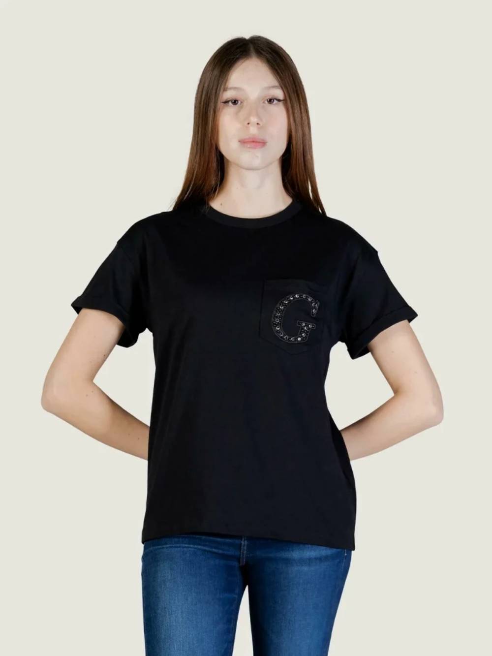 Tričko má kapsu na prsu. Písmeno G je z kamínků